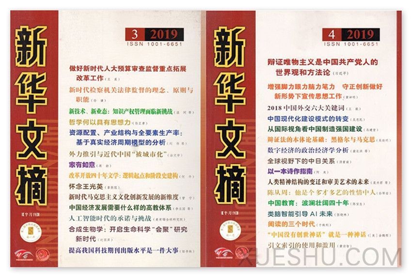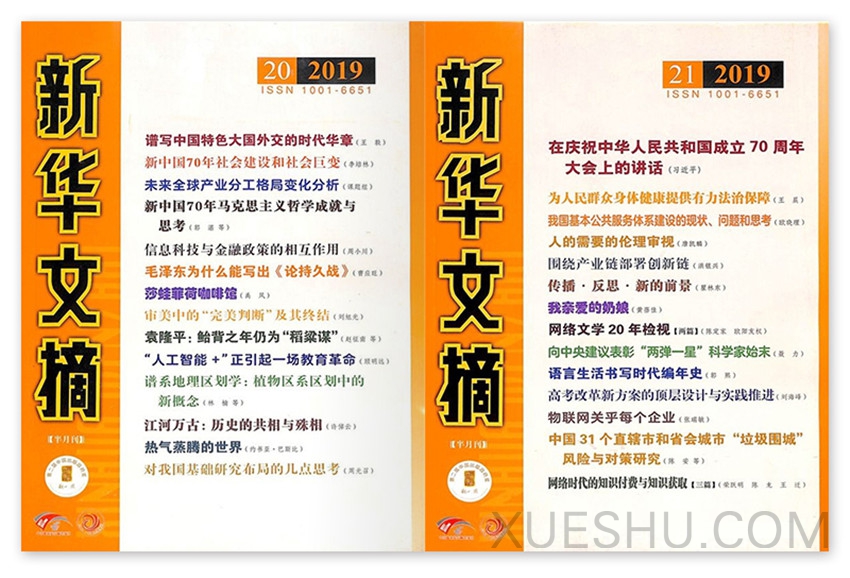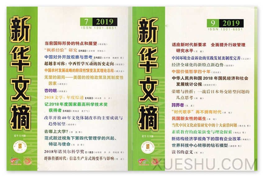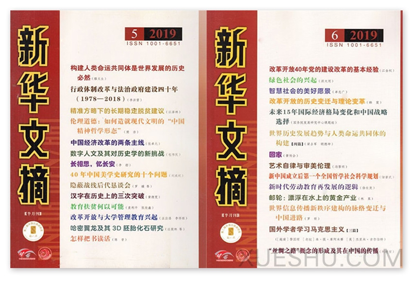 《新华文摘》是由人民出版社主办的一个大型的综合性、学术性、资料性的文摘半月刊,连续荣获国家新闻出版署授予的首届“国家期刊奖”和第二届“国家期刊奖”。